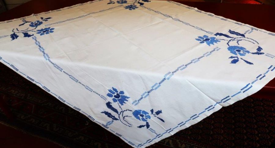 Kvadratisk duk med korsstygn.